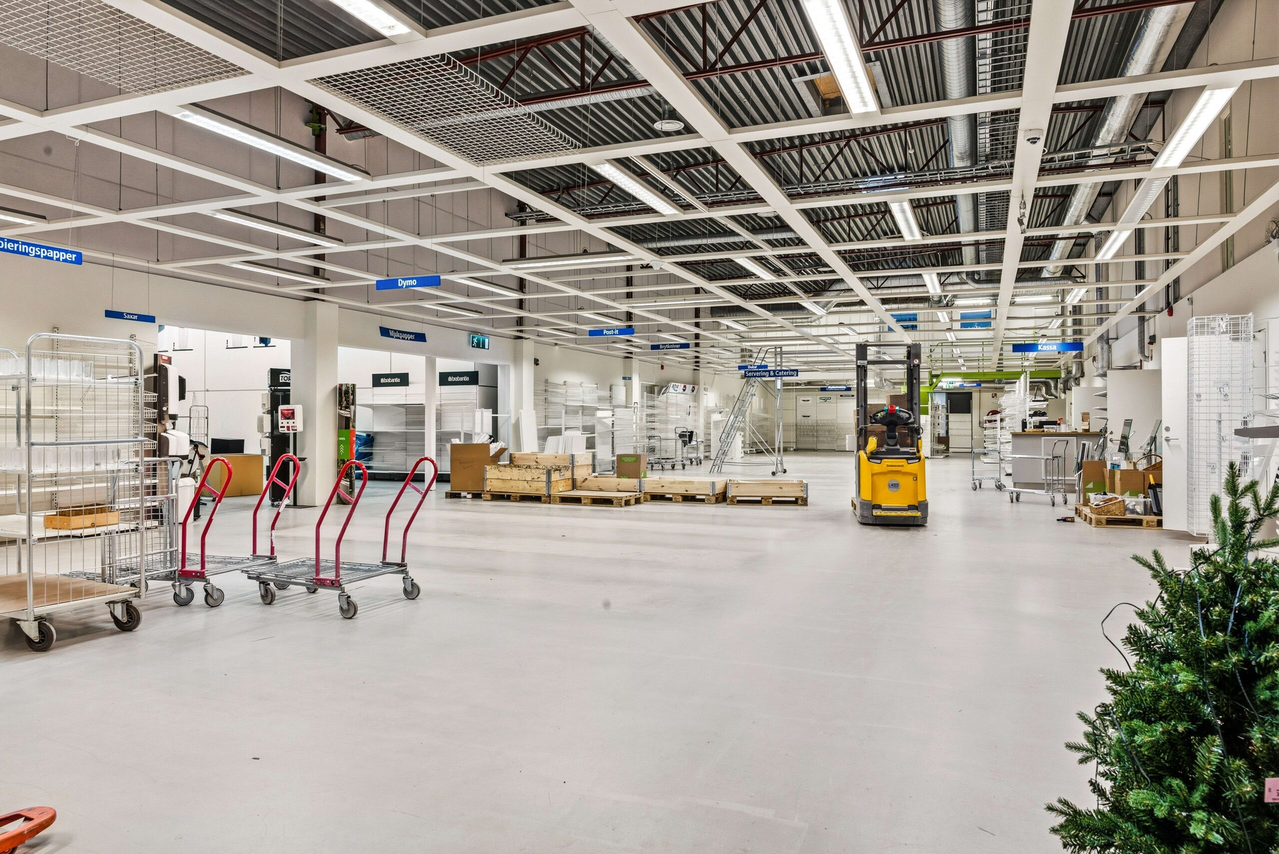 Fastigheten erbjuder en stor variation av lokaler som enkelt kan anpassas efter verksamhetens behov. De generösa lager- och industriytorna har en takhöjd på cirka 8 meter, vilket ger gott om utrymme för effektiv logistik och hantering. Butiksytorna är representativa och kan utformas efter önskemål – perfekt för företag som vill kombinera lager med kundmöten och försäljning.