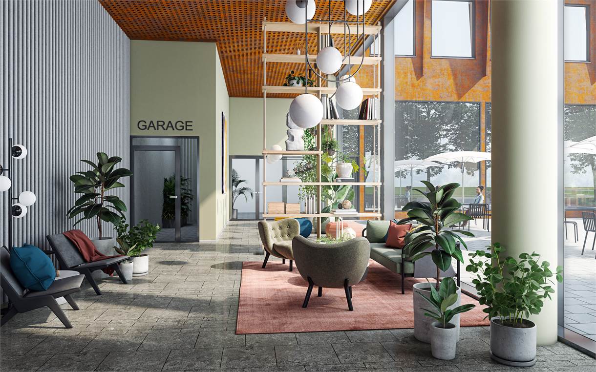 När du kliver in genom husets huvudentré möts du av en modern mötesyta med en inbjudande lobbykänsla – sköna soffor, musik och grönska skapar en avslappnad atmosfär. Det är den perfekta platsen för ett kort möte eller en kaffe. I Parkhus 4 finns flera funktionella ytor att utnyttja, utöver själva kontorslokalen.