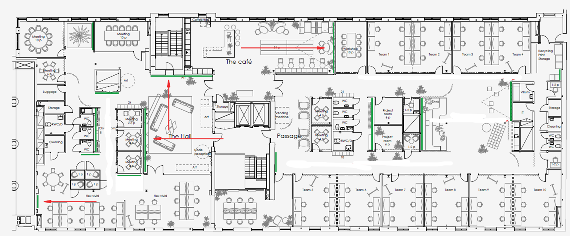 Välkommen till denna rymliga lokal om 1308 kvm, belägen på våning 3 i en fastighet med omslutande tegelväggar och betongbjälklag både för golv och tak. Lokalen är designad med storrum och projektrum, samt har ett flertal mötesrum i olika storlekar, vilket gör den idealisk för företag med varierande behov.