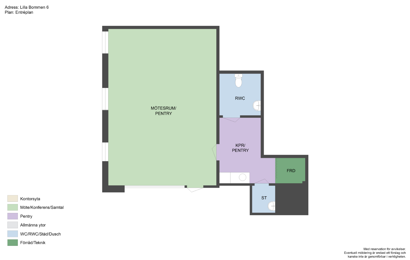 De stora fönsterpartierna ger ett fint ljusinsläpp och skapar en trivsam arbetsmiljö. Lokalen är lämplig för mindre företag som söker en representativ arbetsplats i centrala Göteborg.