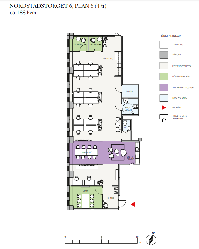 Lokalen erbjuder en trevlig och inspirerande miljö nära en innergård – perfekt för att ta en paus eller avnjuta lunchen utomhus. Med direkt anslutning till Nordstans breda serviceutbud av restauranger, caféer och butiker, samt utmärkta kommunikationer, är detta ett läge som verkligen förenklar vardagen. Brunnsparken, Centralstationen och Nils Ericson-terminalen ligger bara några minuters promenad bort, vilket gör det enkelt att pendla eller resa vidare.