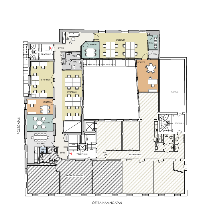 Kontoret består av ett öppet landskap men också en del kontorsrum. Här har du även tillgång till en gemensam innegård.
