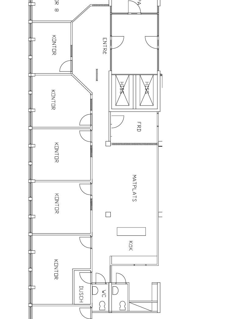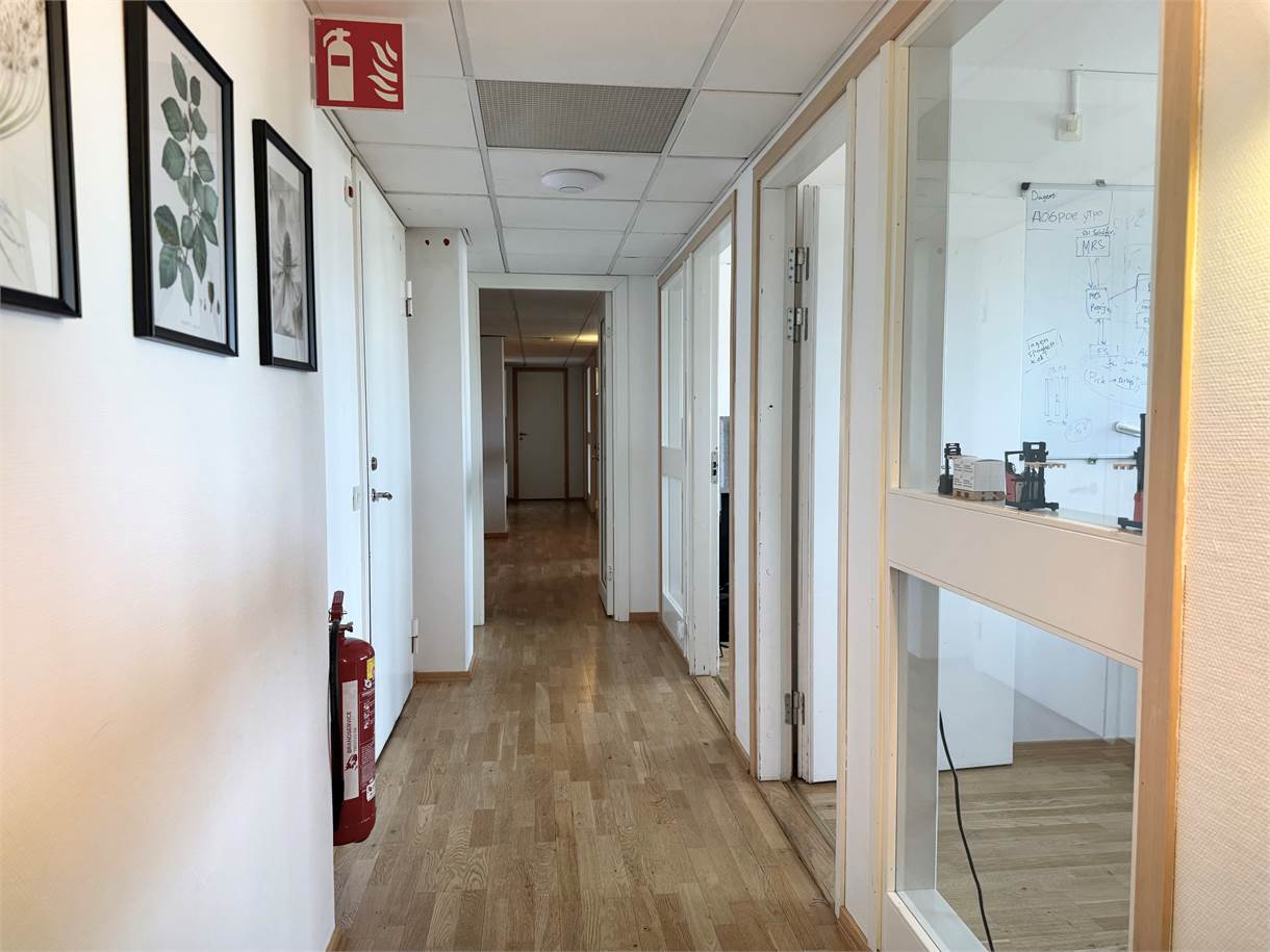Planlösningen består av fyra kontorsrum, ett mötesrum, pentry med matplats, wc med dusch samt förråd. De generösa fönsterpartierna bidrar till en ljus och behaglig atmosfär som gör det enkelt att skapa en inspirerande arbetsplats.